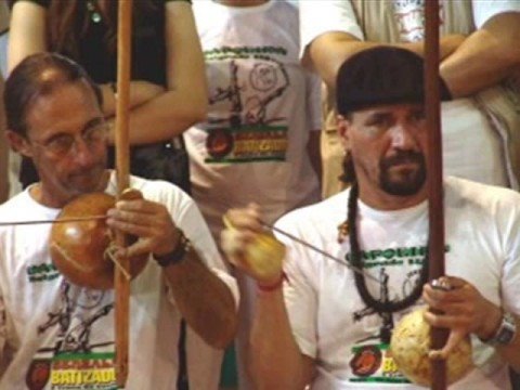 Berimbau bateu, capoeira sou eu.Quem vem lá sou eu, quem vem lá sou eu (coro)